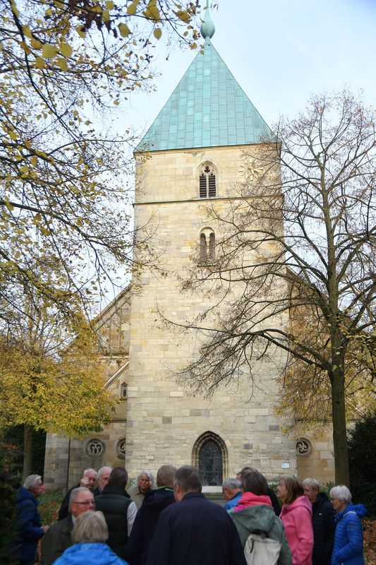 Siegfried Thielen vom Kirchenvorstand ermöglichte schließlich eine Turmbesteigung für solche Interessenten, die sich den Aufstieg über mehrere (teils hölzerne) Treppen und Leitern zutrauten. Im Inneren des Westturms konnten sie sich dann ein unmittelbares Bild von den sechs Bösenseller Glocken und deren Anbringung machen. Werner Welslau aus Ottmarsbocholt, der mit seiner Frau zu dieser „Glockenkunde“ angereist war, fügte noch hochinteressante Ausführungen zu einer alten (mechanisch betätigten) Turmuhr hinzu.